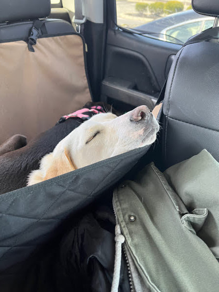 April 05, 2022Drove up to The Ceramic Shop on Saturday to get more clay. I got more Laguna bmix, Laguna 60, and KY Mudworks Brown Bear. While I was there I scored a Dolan knife which I've been eyeing for a while and is always out of stock. I also managed to NOT buy any more glaze. I did get some Amaco black Velvet Underglaze to make some "ink" to do screenprinting with. The dogs came along for the ride and mostly just snoozed.